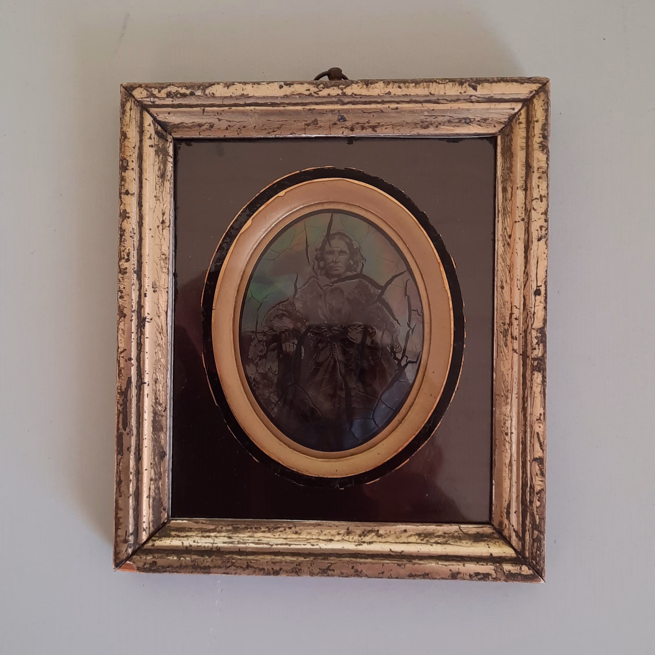 Ein Fototräger auf Karton, eingefasst mit Waldglas.