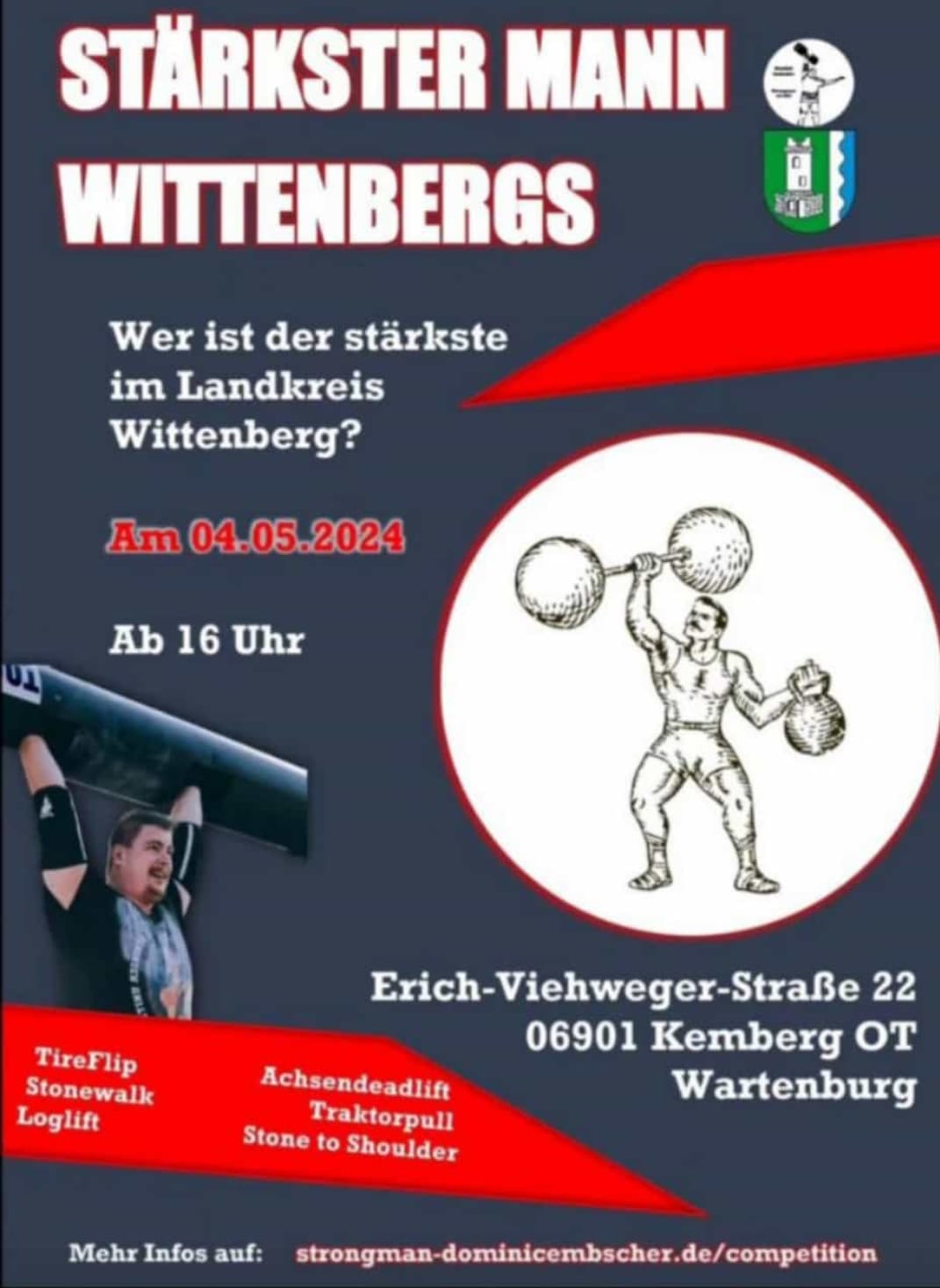 Ganz besonders spannend wird der Wettbewerb „Der Stärkste Mann Wittenbergs!“ organisiert durch Strongman Dominic Embscher. Anmeldungen für den Wettkampf sind möglich über die E-Mail strongman-dominicembscher@gmx.de